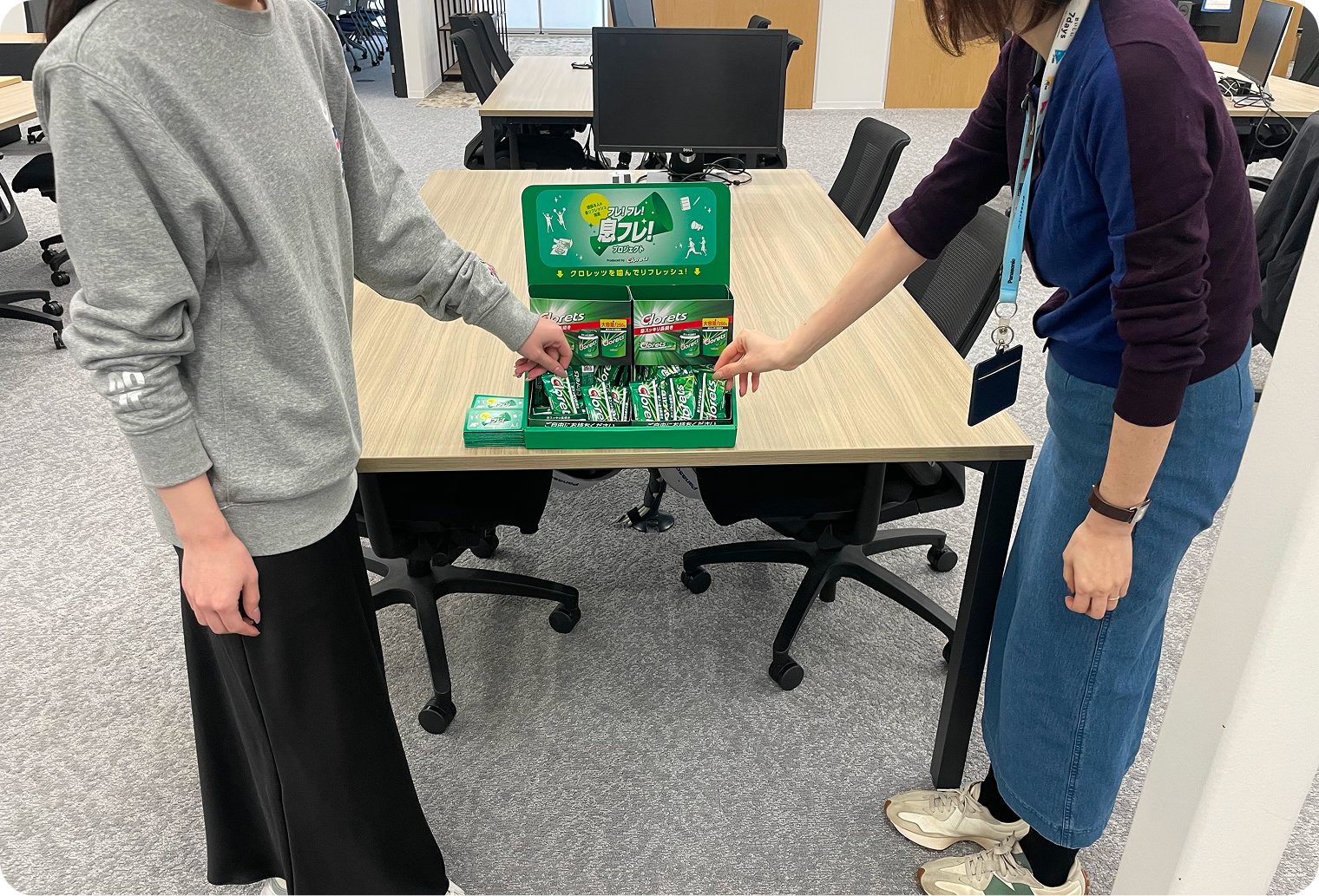 クロレッツを試した社員からは「頭がすっきりする」「集中力が戻る」といった声が寄せられ、手軽に取り入れられる点に魅力を感じる社員もいました。噛むだけで気分を切り替えられ、午後の眠気や長時間作業時にも効果を感じた声も上がりました。